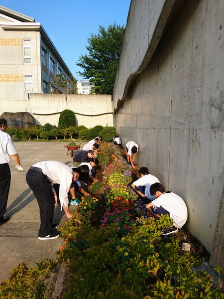豊丘小学校 「全校で植えた中庭花壇」 |
