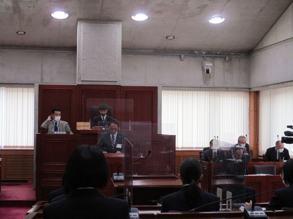 高山中学校 「本年度よりスタート議場での中学生議会」 |